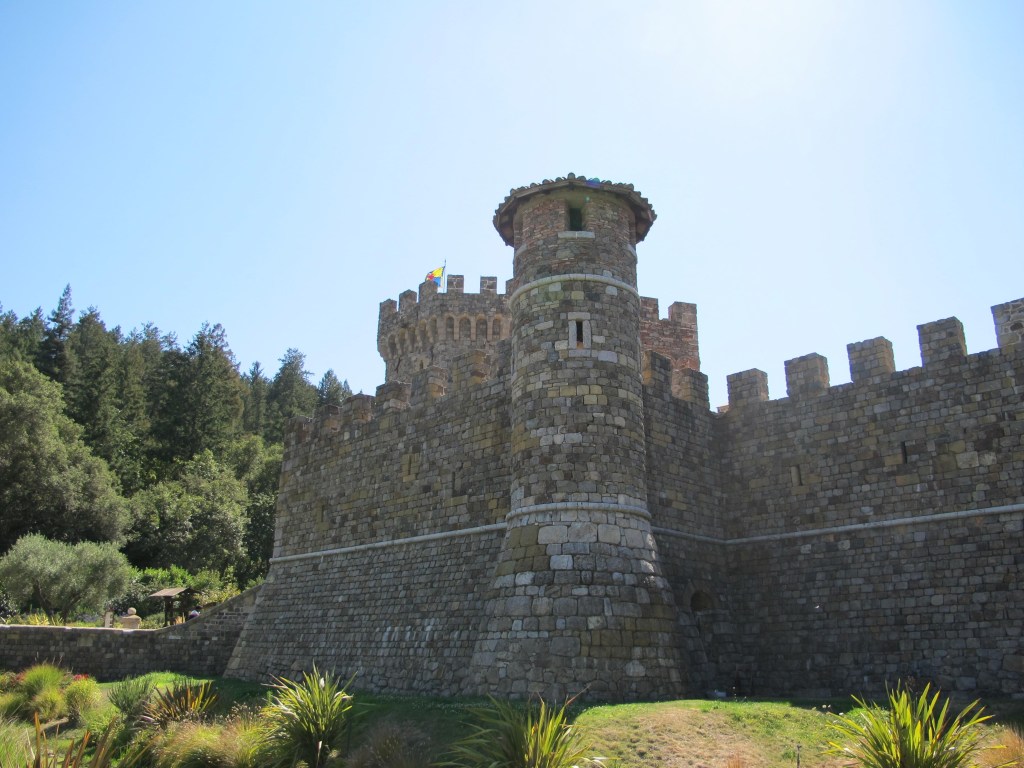 After eating a quick lunch in quaint, downtown Calistoga (imagine Calistoga as being almost exactly like Stars Hollow from Gilmore Girls, just not as cold), we checked into the Calistoga Inn and began our afternoon of wine tasting. We took the free Calistoga Shuttle to visit 2 wineries, Castello di Amorosa and Sterling, and a tasting room across from our hotel called Vermeil Wines.